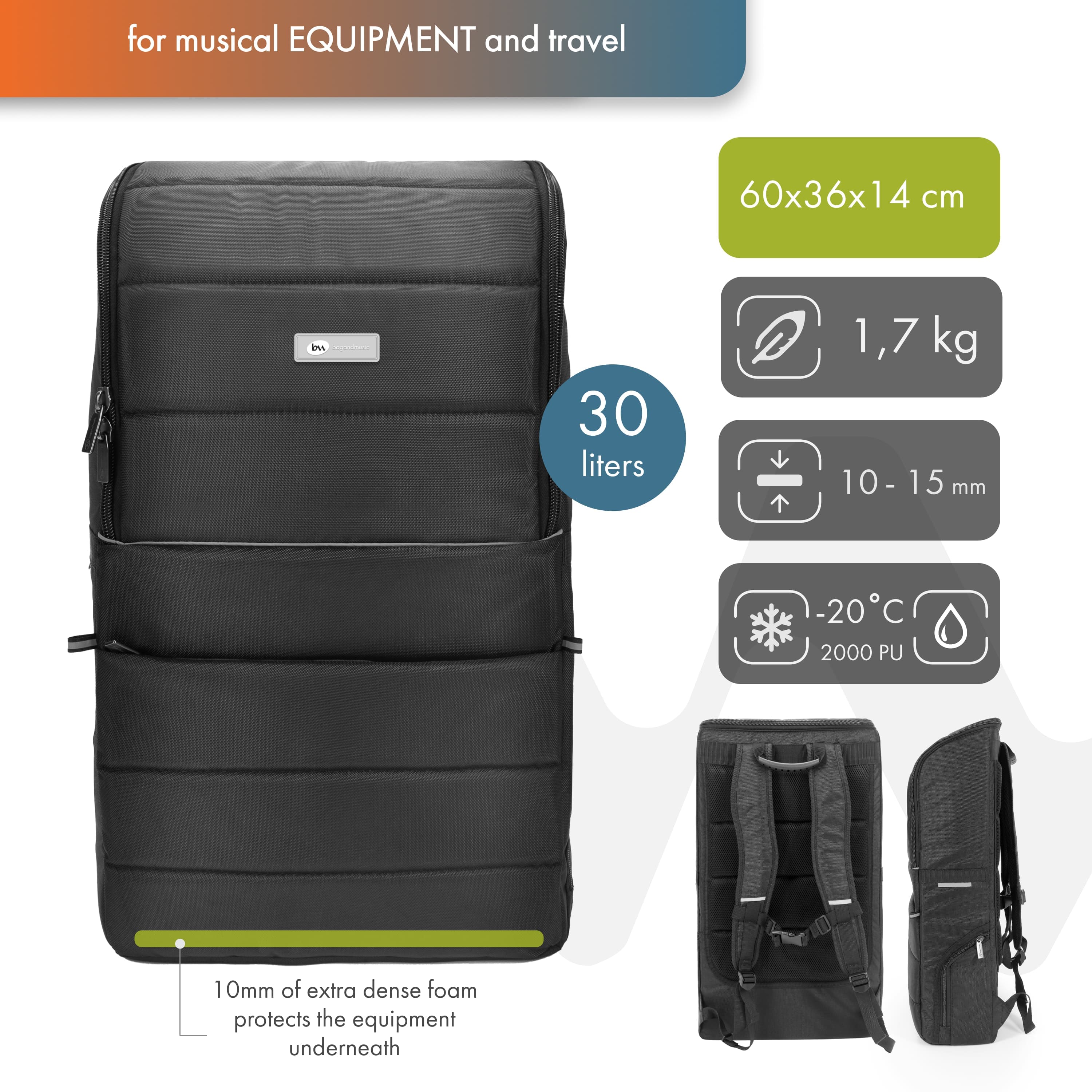 - including 10 mm foam at the bottom of the backpack